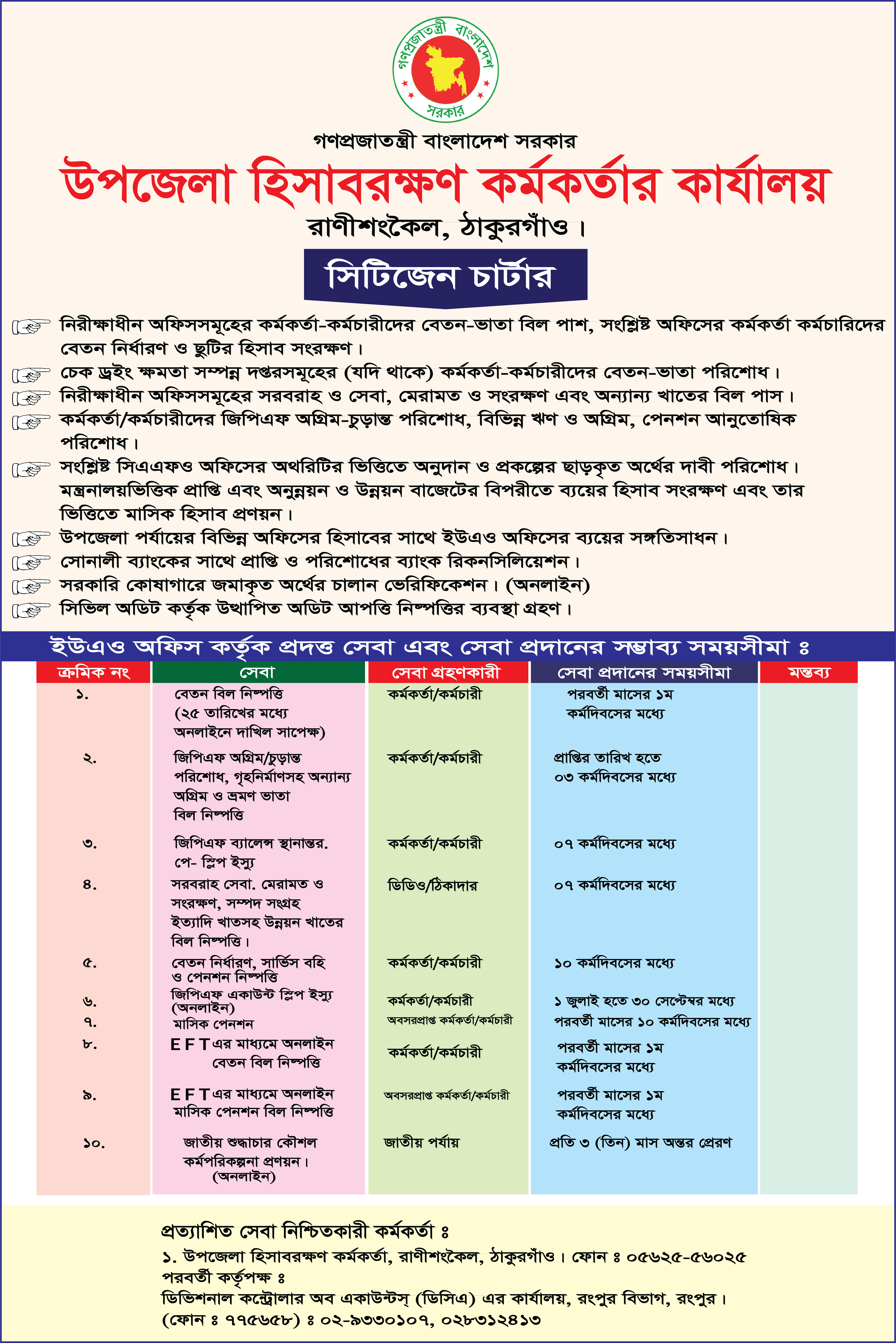 ৩। কর্মকর্তা/ কর্মচারীদের জিপিএফ অগ্রিম/ চূড়ান্ত পরিশোধ বিভিন্ন ঋণ ও অগ্রিম পেনশন আনুতোষিক পরিশোধ।